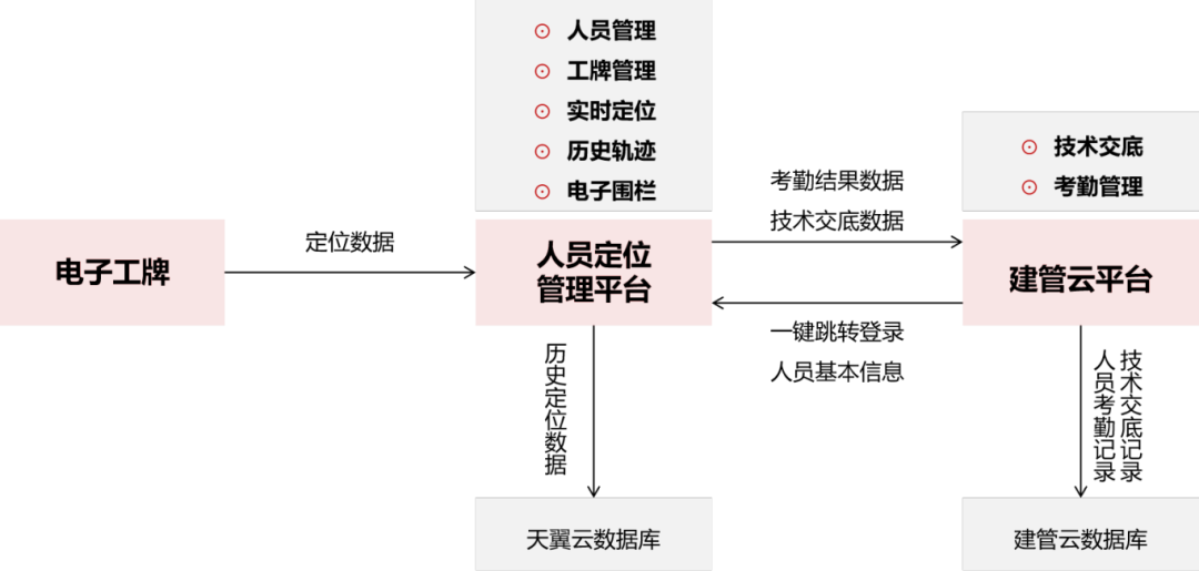 平臺接入湖北聯(lián)投建管云,通過“北斗定位+雙平臺協(xié)同(人員定位管理平臺+建管云平臺)”的模式落地,構(gòu)建“終端采集-平臺處理-多端協(xié)同”全流程體系,實(shí)現(xiàn)考勤自動化、定位精準(zhǔn)化、交底數(shù)字化、管理可視化。