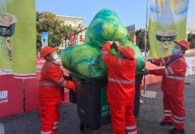 賽事結束后,項目團隊立即轉(zhuǎn)入賽后恢復作業(yè)模式,迅速開啟“人機”協(xié)同,對賽道沿線遺留的紙杯、包裝物等賽事垃圾進行集中清理、分類轉(zhuǎn)運。累計清理200余處衛(wèi)生死角,清運賽事垃圾約30余噸,并在1小時內(nèi)還原道路潔凈,以最快速度使城市環(huán)境與秩序回歸常態(tài)。